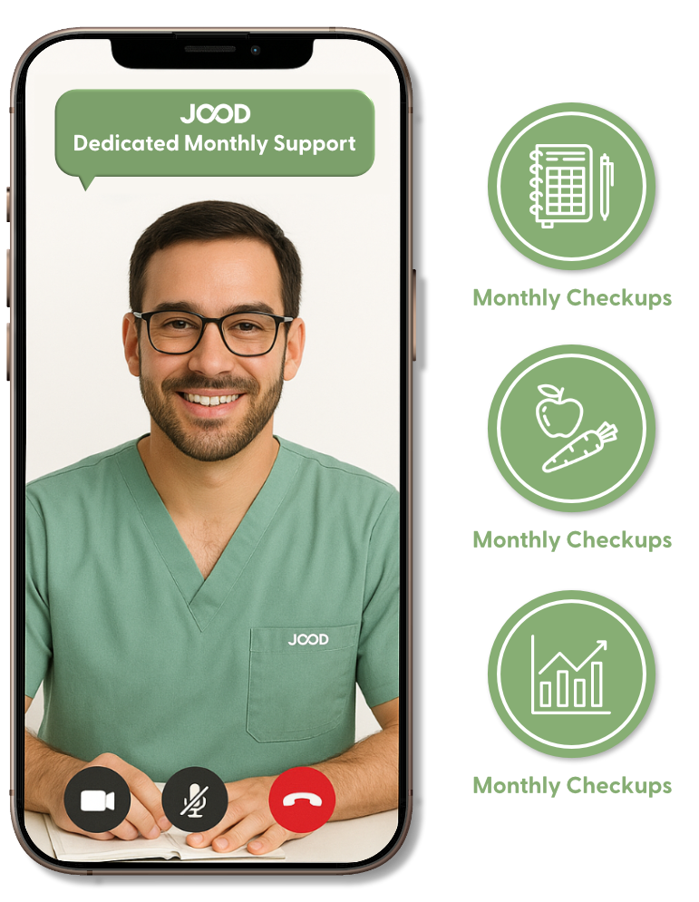 At Jood, we take a full-circle approach to weight loss—prescribing the right treatment for you, while offering ongoing support and expert advice to help you build healthy, lasting habits.